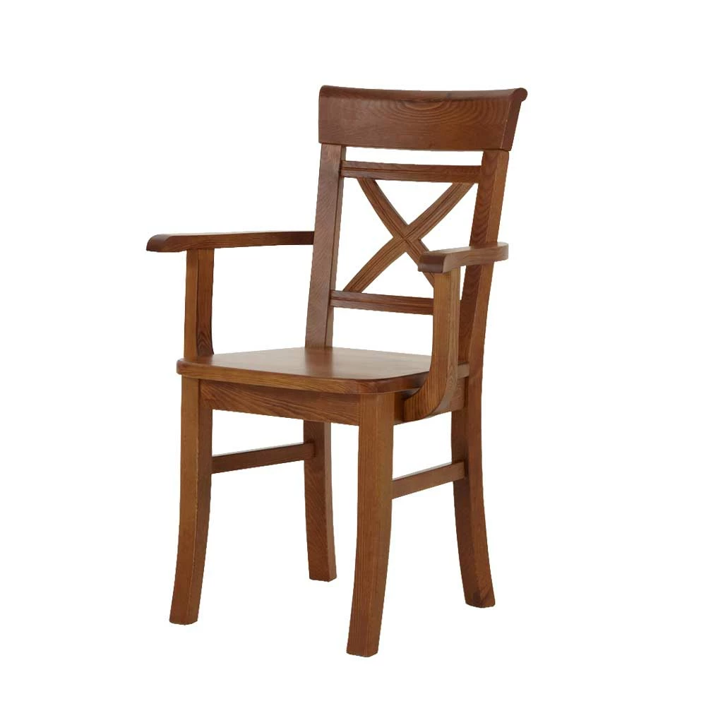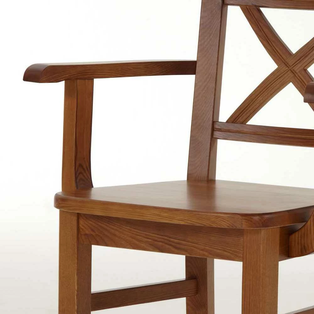 - Rückenlehne aus Holz mit X-förmigen Verstrebungen