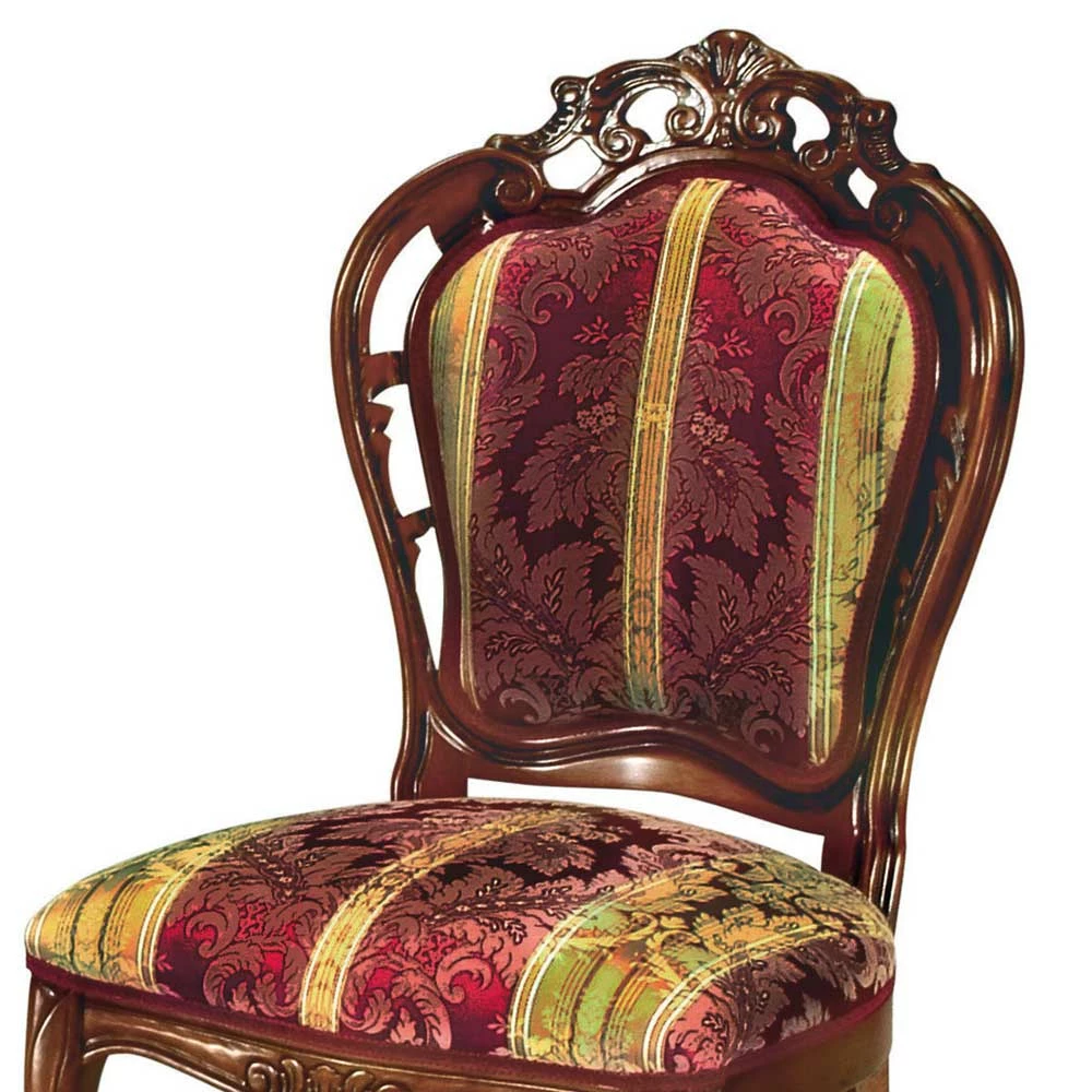- Opulenter Polsterstuhl in Nussbaumfarben, Dunkelrot und Goldfarben