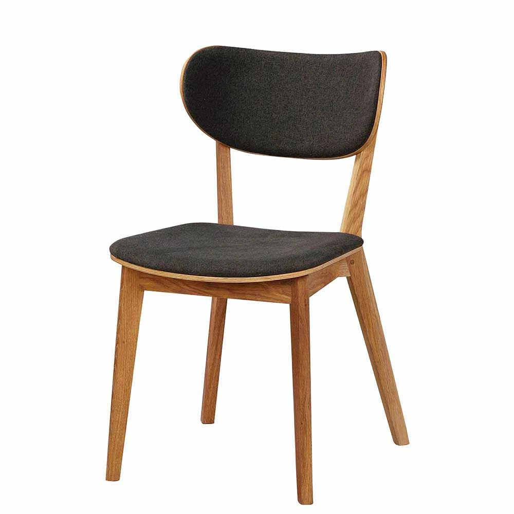 - Klassisches Stuhl Set in Eichefarben und Dunkelgrau