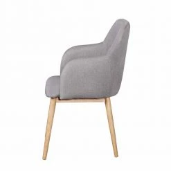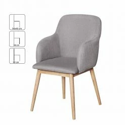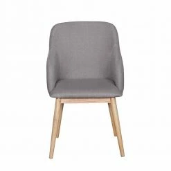 - Eleganter Esszimmerstuhl in Hellgrau und Holz Naturfarben